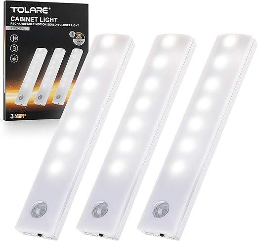 Under Cabinet Lighting Rechargeable Tolare Led Closet Lights Wireless Motion Sensor Night Light Indoor Magnetic Removable Stick On Lights For Kitchen Stairs Wardrobe Hallway Cupboard 3 Pack Amazon Com